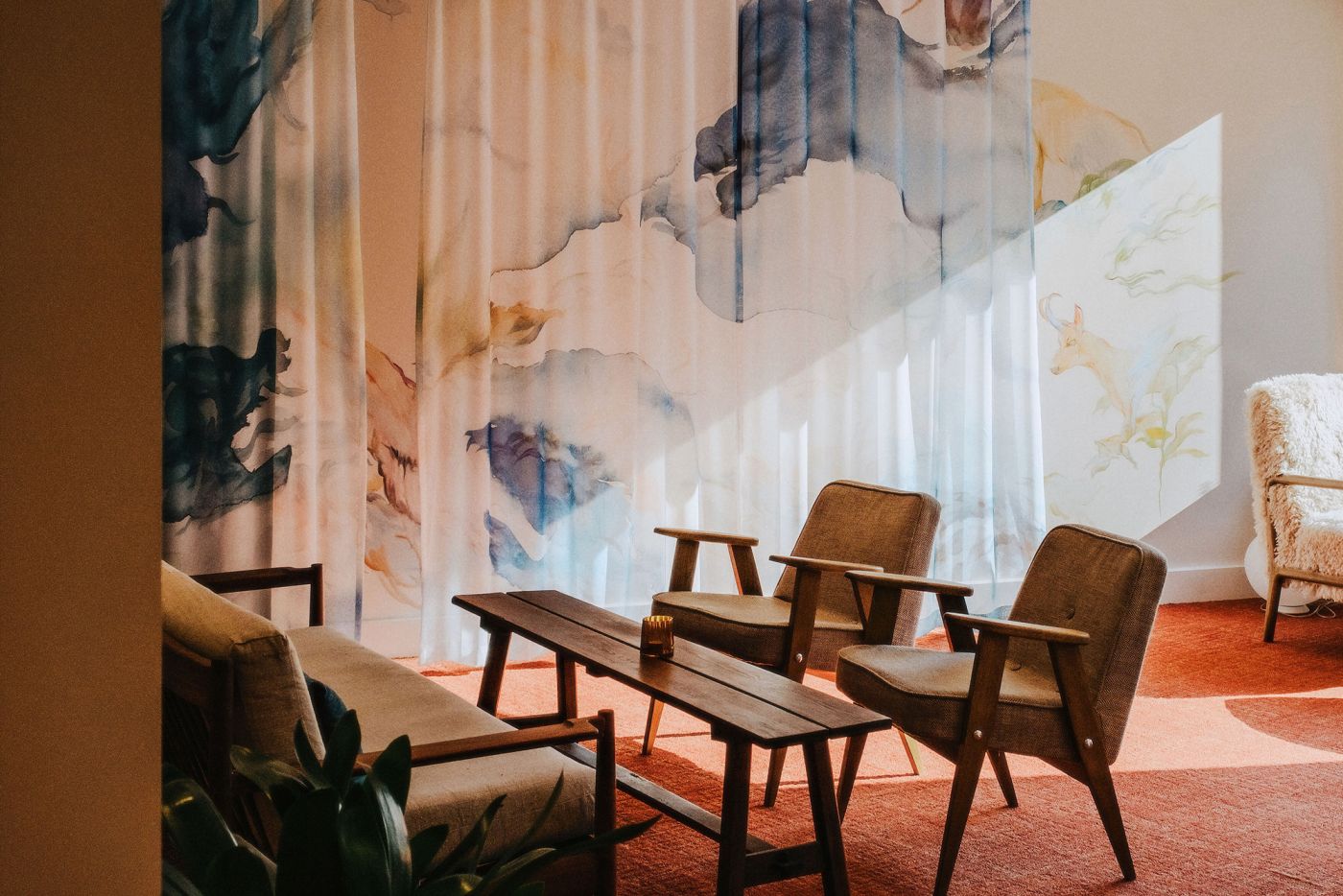 Discovering the Chamonix valley, Makiko Furuichi was struck by the richness of the local flora and fauna. She became interested in the creatures that roam the woods and mountains. The singularity of the ecosystems specific to each floor of the massif led her to imagine a work made up of strata. The work created for the Hôtel Lyret is an installation comprising a mural and six textile panels: a bewitching whole that invites the viewer to lose himself in the composition.
